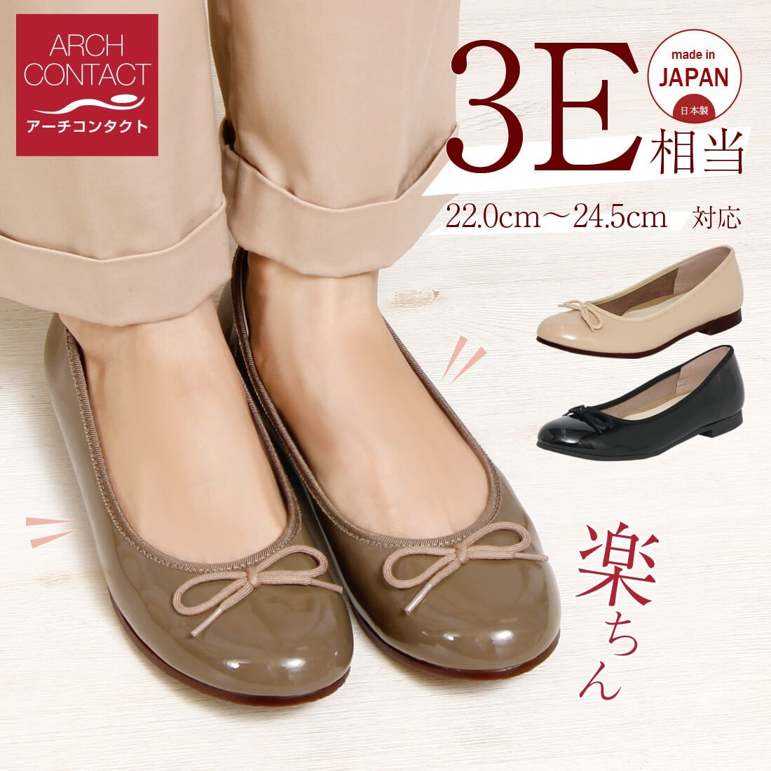 ベーシックなベージュ、オーク、黒の3色展開で、どんなコーディネイトにも合わせやすく、季節を問わず使いやすいパンプスです。