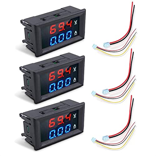 サムコス デジタル電圧計電流計 3個セット LEDパネル取付け型 10A DC0-100V 逆接続保護 高精度 0.1V 0.01A リード線付