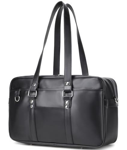 [uishun] スクールバッグ 高校生 合皮 スクバ 女子 高校生 ボスドンバッグ 学生 JK 大きめ 革 大容量 通学 通塾 大容量 肩紐長