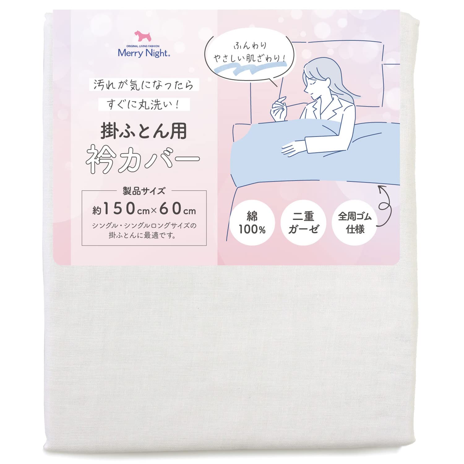 メリーナイト(Merry Night) 衿カバー 2重ガーゼ ホワイト 約150×60cm (シングル・シングルロングサイズの掛け布団に最適)全
