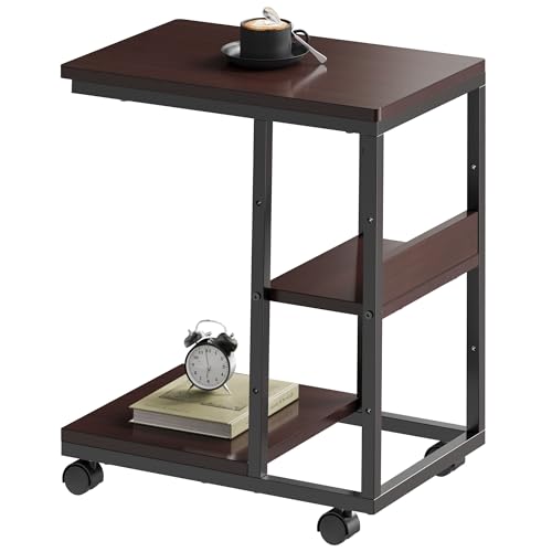 YeTom サイドテーブル キャスター付き コの字型ベッド サイドテーブル リビング 可移動ナイトテーブル 層板は調節 幅48×奥行30×高さ6