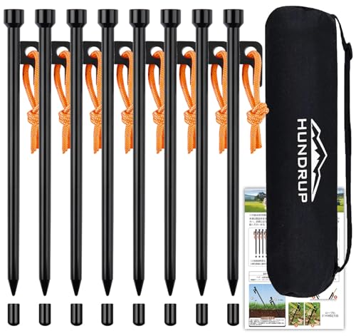 HUNDRUP ペグ 20cm/28cm 8本/16本 鍛造ペグ レーザー溶接 反射材入りロープ スチール ソリッドステーク 電着塗装 収納ケー