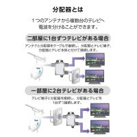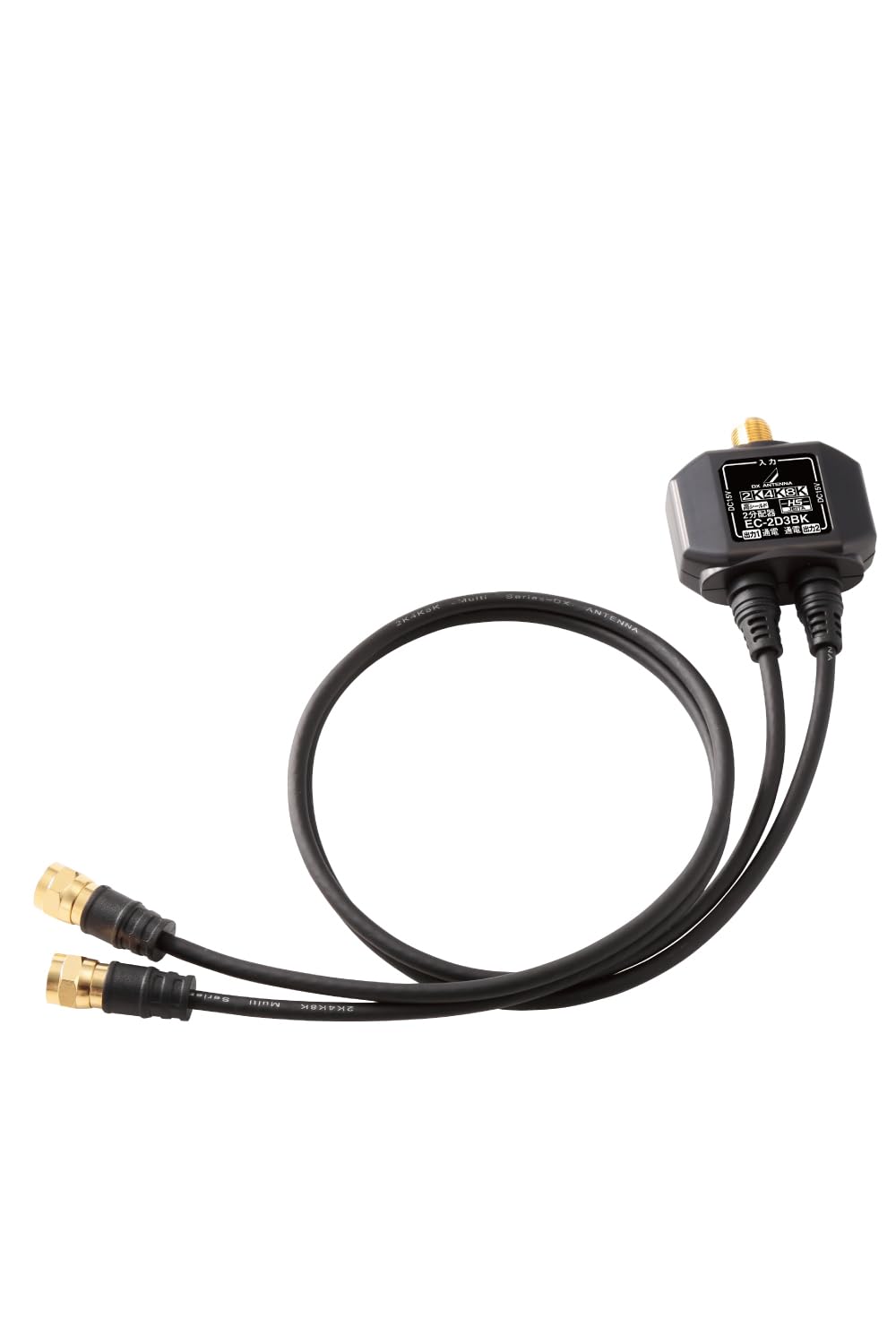 ・出力側ケーブル付全端子通電形2分配器。テレビの電波を2つに分けます。