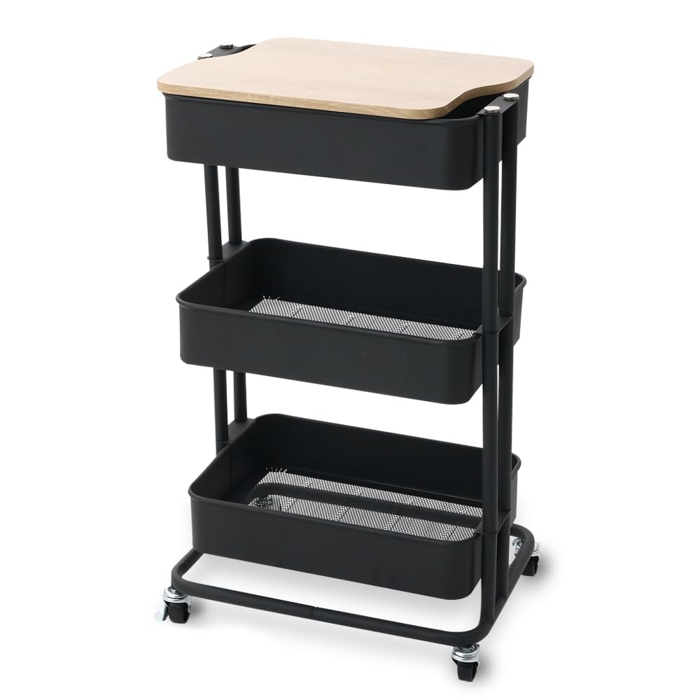 取り出しやすくリニューアル! アイリスプラザ キッチンワゴン 調味料ラック バスケットラック 木天板タイプ 収納ワゴン 3段 キャスター付 幅4