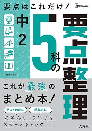 ■これが最強のまとめ本■ 中2の5教科の要点を この1冊にギュギュっと詰め込みました。 くわしい説明を載せているので テスト直前や学年末の知識の確認 定着に最適です。 ■どこにでも持ち運びOK■ 勉強したい教科 単元を手軽にスピードチェックできます。 図やイラストがあるので 短時間でもしっかり確認できます。 ■1単元が見開きで完結! 大事なところがわかる■ テスト対策のポイントが一目でわかる「テストで差をつける」のコーナーや 「重要」マーク 「必出」マークを参考に ポイントを定めて学習できます。