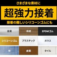 ・さまざまな素材にしっかり接着!木・金属はもちろん、接着の難しいシリコーンゴム、ポリプロピレン、ポリエチレン、塩ビにも使える高性能な超強力接着剤。屋外や水まわり、凸凹面にもご使用いただけます。(※ポリエチレンフィルムは、つきにくい場合があります。)
