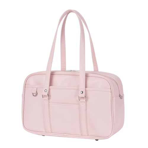 [Osteenii] スクールバッグ 合皮 スクバ 女子 高校生 学生 JK 制服 鞄 PU 大容量 茶色 黒 通学 (ピンク(改良))