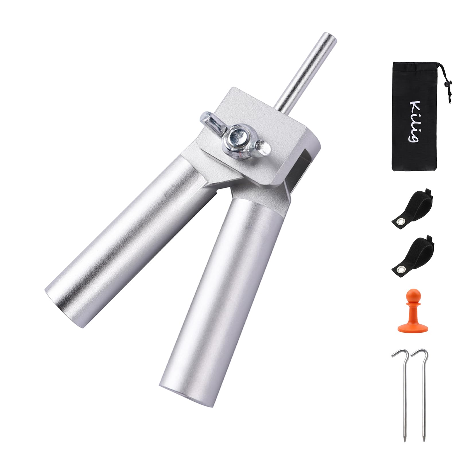二又化パーツ A6061アルミ合金 ポール テント用 二股化 パーツ フタマタ 簡単 軽量 ポールエンドロック/ポール固定ベルト*2/ペグ*2/