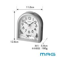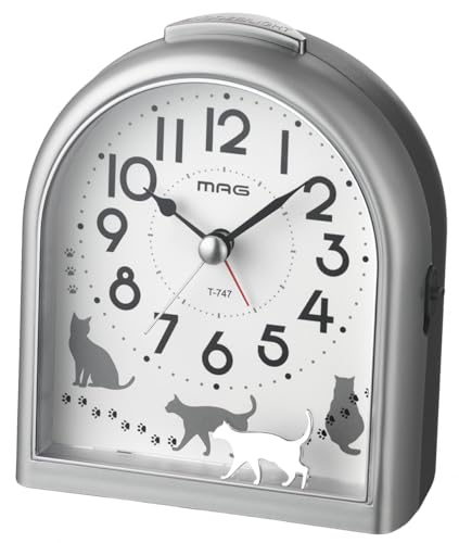 MAG(マグ) 目覚まし時計 置き時計 アナログ ねこ ネコ 動物 かわいい 子供 静音 連続秒針 電子音 アラーム スヌーズ ライト シルバー