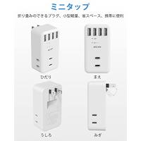 ・「1台7役・コンセントタップ」4つのUSB-Aポートと3つのAC差込口を搭載したマルチタップです。また、ACコンセントを3方向に分配して、小型ACアダプタを同時に挿入しても干渉せず、配線がすっきりしています。