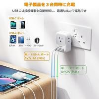 ・USB‐Cポート付き コンセント 変換プラグこれは2つUSB‐A口ポートと1つUSB‐Cポートを搭載するマチル変換プラグです。USB接続機器はデジダル製品の入力電流を自動検知し、最適な電流を送るので、単一USB‐Aポート最大2.4A(単一USB‐Cポート最大3.0A)で急速充電。スマートフォンやタブレットなどの多機種の電子機器への同時に充電ができます。