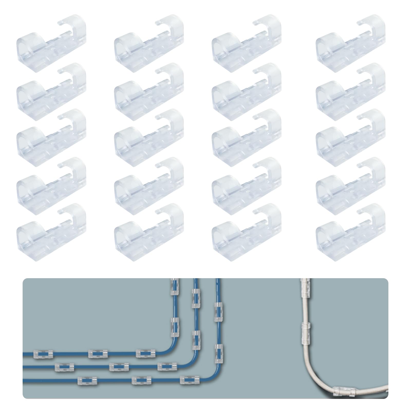 Coollooda ケーブルフック (20個入り) 固定 ケーブルクリップ 壁 コードクリップ 粘着シート付 配線止め 壁掛けコードホルダー 強