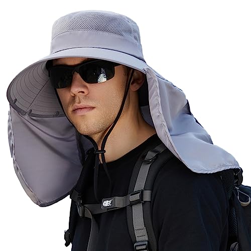 [LeafIn] フィッシングハット サファリハット つば広 帽子 シェードハット メンズ メッシュ UVカット 日焼け防止 2way 釣り 登