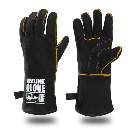 [QeeLink] 耐熱グローブ 本革 牛革 手袋 キャンプグローブ 耐熱 防火手袋 溶接/BBQ/ストーブ/焚き火台/薪ストーブ アウトドア用