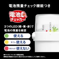 ・電池残量を3色のLEDで表示するので、電池チェッカーとしても使える。