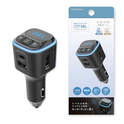 カシムラ スマホの音楽をワイヤレスで聴く Bluetooth FMトランスミッター / 高出力対応USB2ポート&音楽データ再生機能付 フルバン