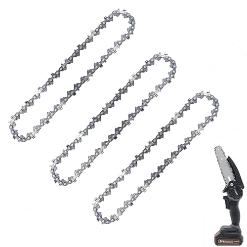 ・製品仕様サイズ:4インチチェーン、材質:65Mn、規格:28Eチェーンリンク・14Tカッター、パッケージ内容:3本入り。チェーンが2つ付いているので、予備のチェーンを残すことができて、とても便利で手頃な価格です。