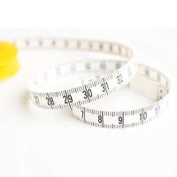 ・両面目盛最大200cm両面ともcm表記。端は白い余白が約3cmあります。ケースはPVC・ABS樹脂で、テープ部分はポリファイバーをつかい目盛りも消えにくい。