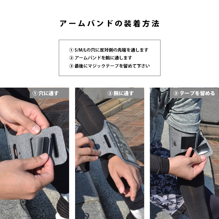 ウォーキングやランニング時に、スマホを収納して腕に装着するタイプのアームバンドです。