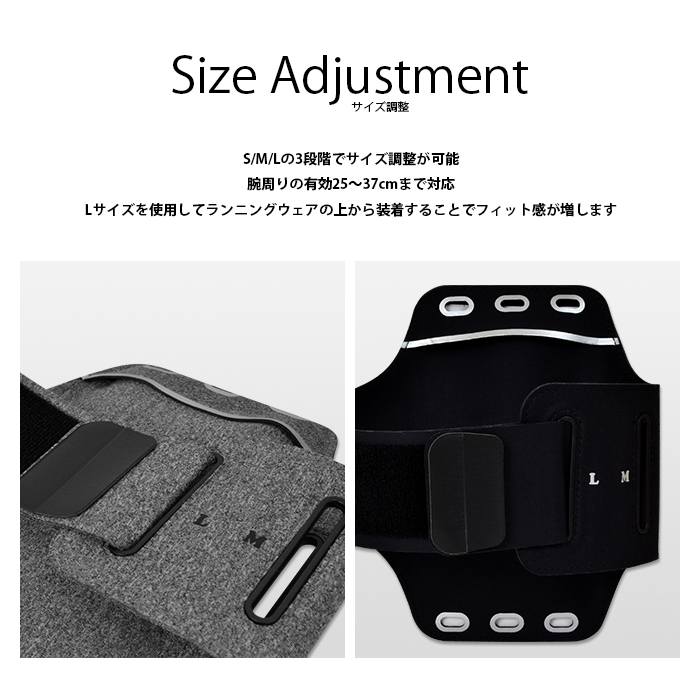 ●3段調整のLサイズを使用すれば、ランニングウェアやウインドブレーカーの上から使用することもできるので、ウォーキングやランニング時にずり落ち防止にもなります