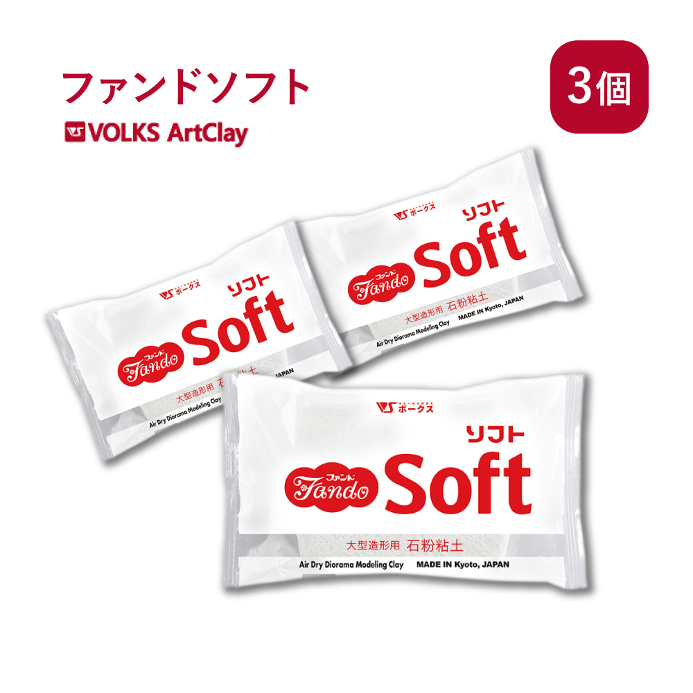 石粉粘土 ファンドソフト 400g×3個 ボークス アートクレイ Volks Artclay 石粉 粘土 やわらかい セット 造形 ホワイト 粘度 調整