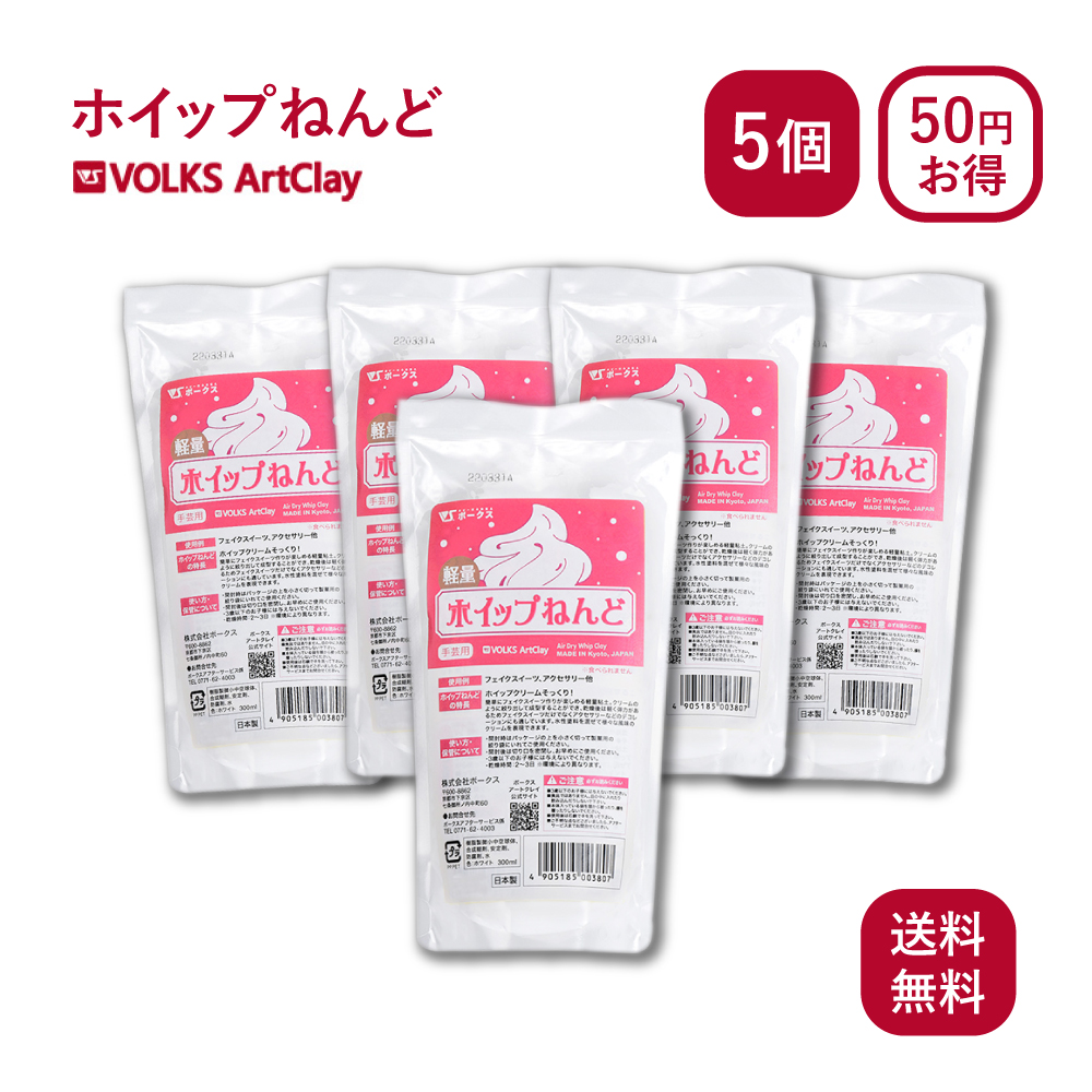 軽量 ホイップねんど 80g×5個 ボークス アートクレイ Volks Artclay 軽量 粘土 セット 絞り出し 成型 手作り フェイクスイーツ アクセサリー デコレーション