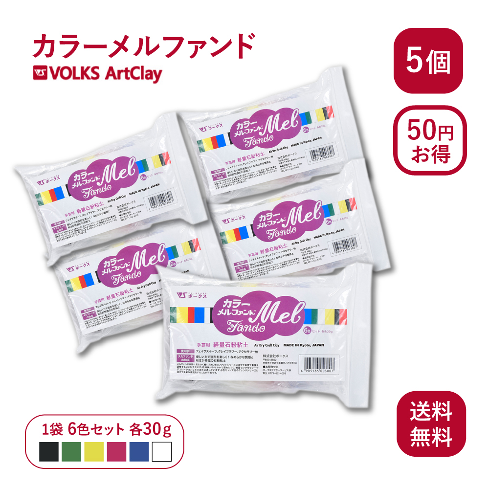 軽量石粉粘土 カラーメルファンド 180g ×5個 ボークス アートクレイ Volks Artclay 石粉 粘土 セット 造形 白 青 赤 黄 緑 黒 30g × 6色
