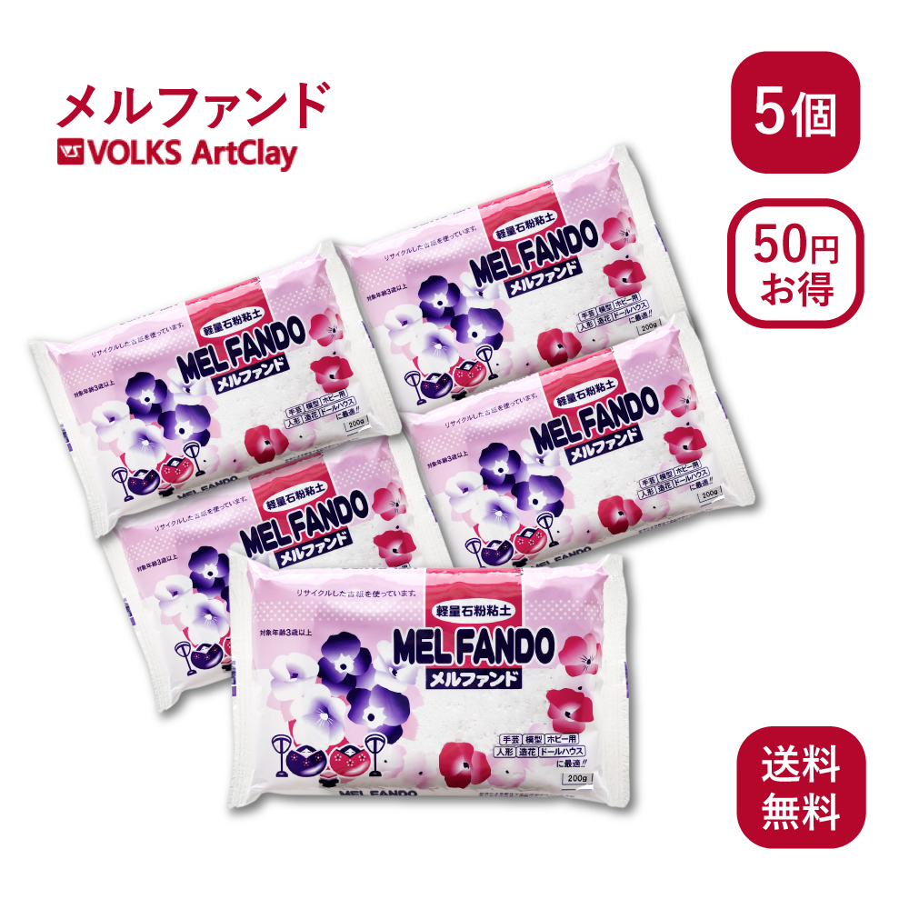 軽量石粉粘土 メルファンド 200g ×5個 ボークス アートクレイ Volks Artclay 石粉 粘土 セット 造形 やわらかい フェイクスイーツ クレイフラワー アクセサリー