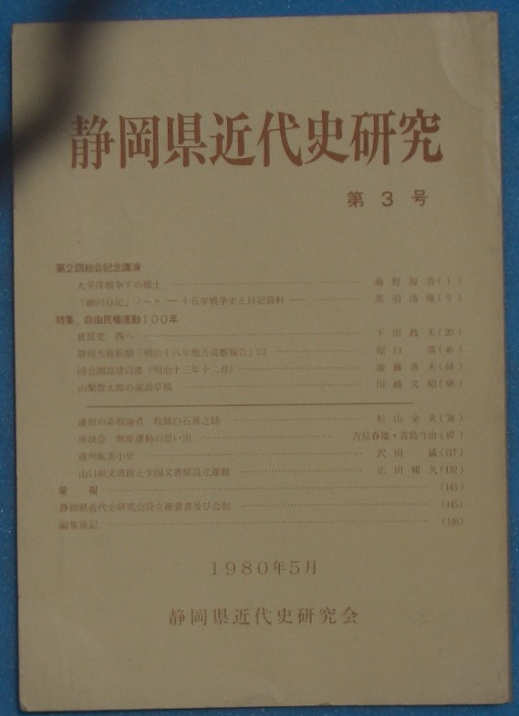 ☆☆☆静岡県近代史研究 3号 1980年5月 静岡県近代史研究会
