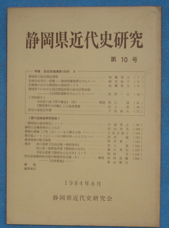 ☆☆☆静岡県近代史研究 10号 1984年8月 静岡県近代史研究会 特集・自由民権運動100年(4)