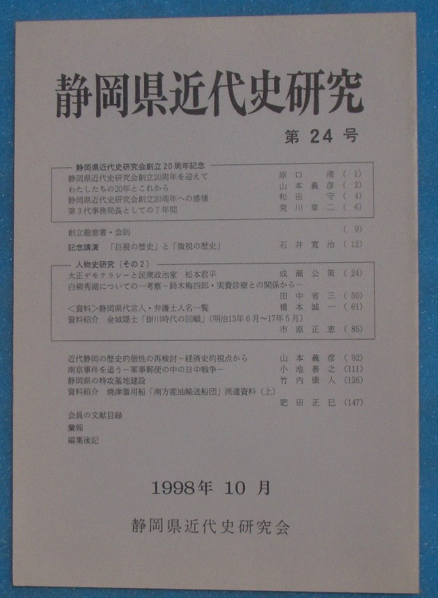 ☆☆☆静岡県近代史研究 24号 1998年10月 創立20周年記念 静岡県近代史研究会