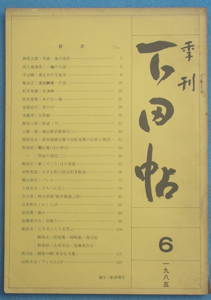 ☆☆○季刊 下田帖 6号(1985年10月) 清水税関支署下田監視署の沿革と現況ほか