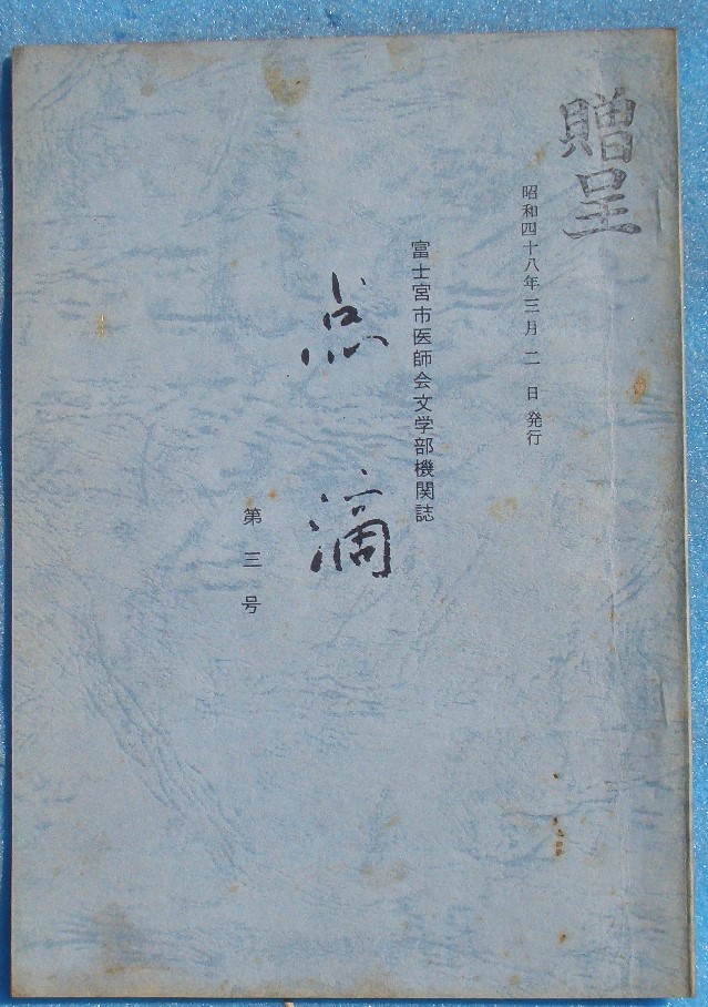 A5判、薄冊22ページ、贈呈印、昭和48年、富士宮市医師会文学部編集委員発行。