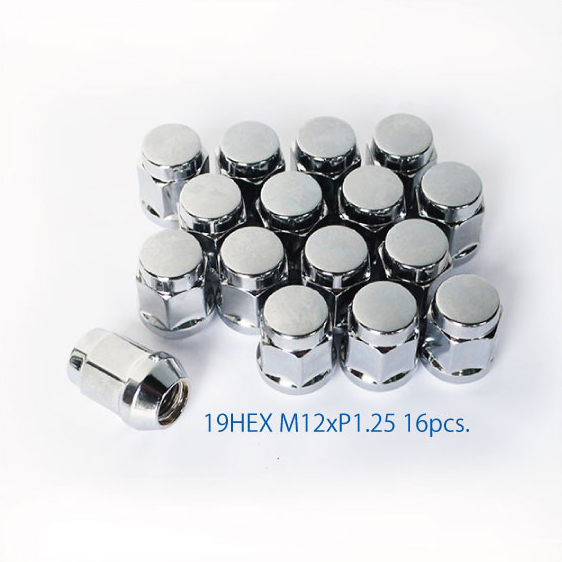 特価 4穴車用 16個 19HEX M12 P1.25 60°テーパー座 メッキ 袋ナット ホイールナット ラグナット スバル スズキ 日産