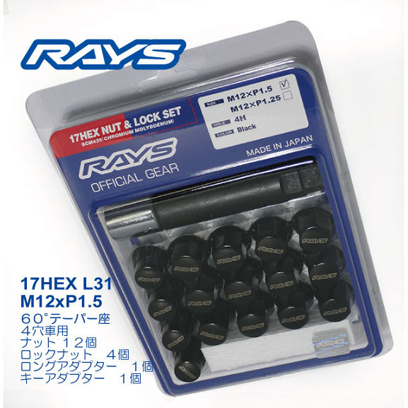 レイズ 17HEXロックナットセット 4H M12XP1.5 ブラック/マツダ