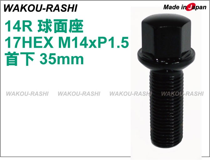 和広 ラグボルト 14R球面座 首下35mm 17HEX M14xP1.5 ブラック 1本