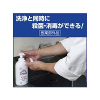 ●リリースコントロール剤GE(※1)+殺菌成分(※2)で、洗浄と同時に手指を殺菌します。●▼※1:グリセリルエチルヘキシルエーテル、グリセリンモノイソデシルエーテル(起泡剤)●▼※2:イソプロピルメチルフェノール●飲食店の厨房など、高い衛生レベルが求められる場所におすすめです。●手肌にやさしい弱酸性。さらに保湿成分配合(※3)で、手指のうるおいを保ち、なめらかな洗い上がりです。●▼※3:テトラデシロキシPGヒドロキシエチルデカナミド、ユーカリエキス●無香料なので、食品を取り扱う方にも安心してご使用頂けます。●青色の液体です。●※つめかえ容器には別売りの「クリーン&クリーンF1薬用ハンドウォッシュ用つめかえ容器」(61-8508-92)をご利用ください。