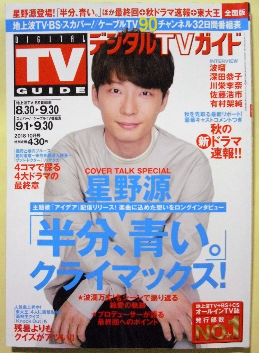 中古雑誌 『 デジタルTVガイド全国版 2018年10月号 』/ 東京ニュース通信社 / 星野源