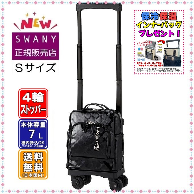 スワニー キャリーバッグ SWANY D-591 エマイロVI TS15サイズ ブラック色 (小さいサイズ) 【在庫ございます】 4輪(低騒音・低振動)キャスター ストッパー付