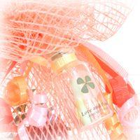 ●カワイイ「四つ葉の押し花のミニボトル」にメッセージがプリントされて入っています。