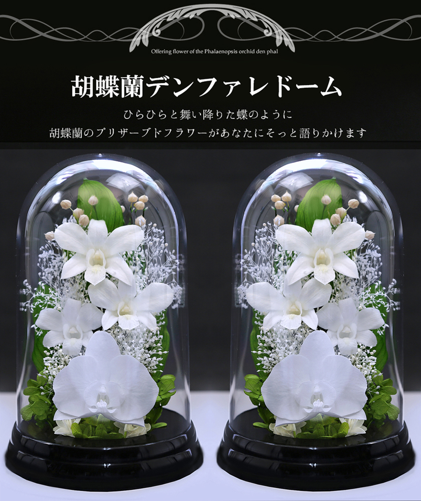 新盆 初盆 仏花 プリザーブドフラワー お供え 1対 お供え花 ブリザードフラワー 仏壇用 法事 供花 御供 胡蝶蘭【対デザイン デンファレドーム 】