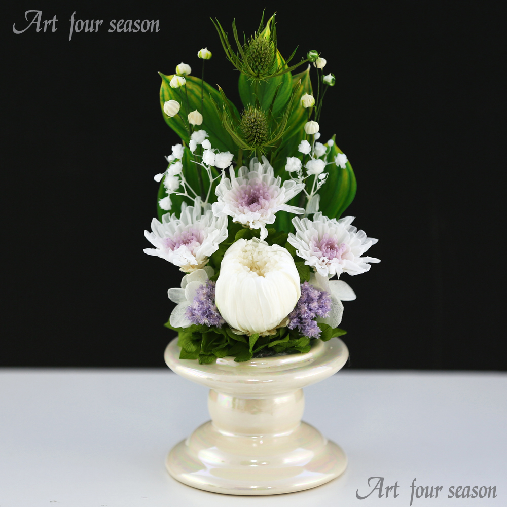 新盆 初盆 プリザーブドフラワー 仏花 お供え花 ブリザードフラワー 仏壇 法事 供花 アレンジメント フラワーギフト アートフォーシーズン 【ことね菊Vase 】