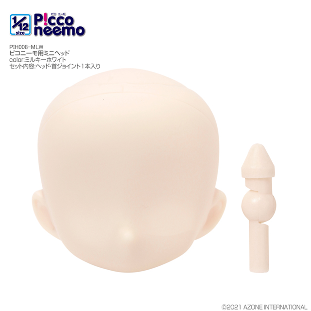 アゾンインターナショナル PIH008-MLW 1/12 ピコニーモ用ミニヘッド ミルキーホワイト/無彩色無植毛