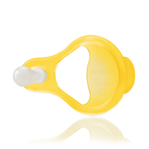 - 腹臥位や側臥位でも必要な時は吸い続けられるよう、おしゃぶりの持ち手が頬側にくる設計。