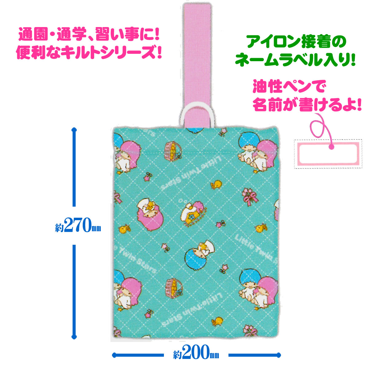 - 子どもから大人まで幅広い世代に人気の「リトルツインスターズ」のキルティング素材のシューズバッグです。