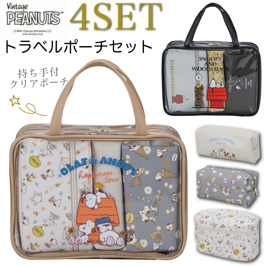 持ち運びにも収納にも便利な、スヌーピーのトラベルポーチ4点セットが登場しました。