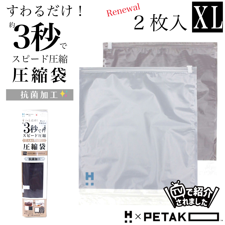 PETAKO 圧縮袋 XLサイズ 2枚入り 抗菌 日本製 リニューアル ハピタスプラス ペタコ 収納袋 トラベル グッズ 旅行 シフレ HPL7130-XL