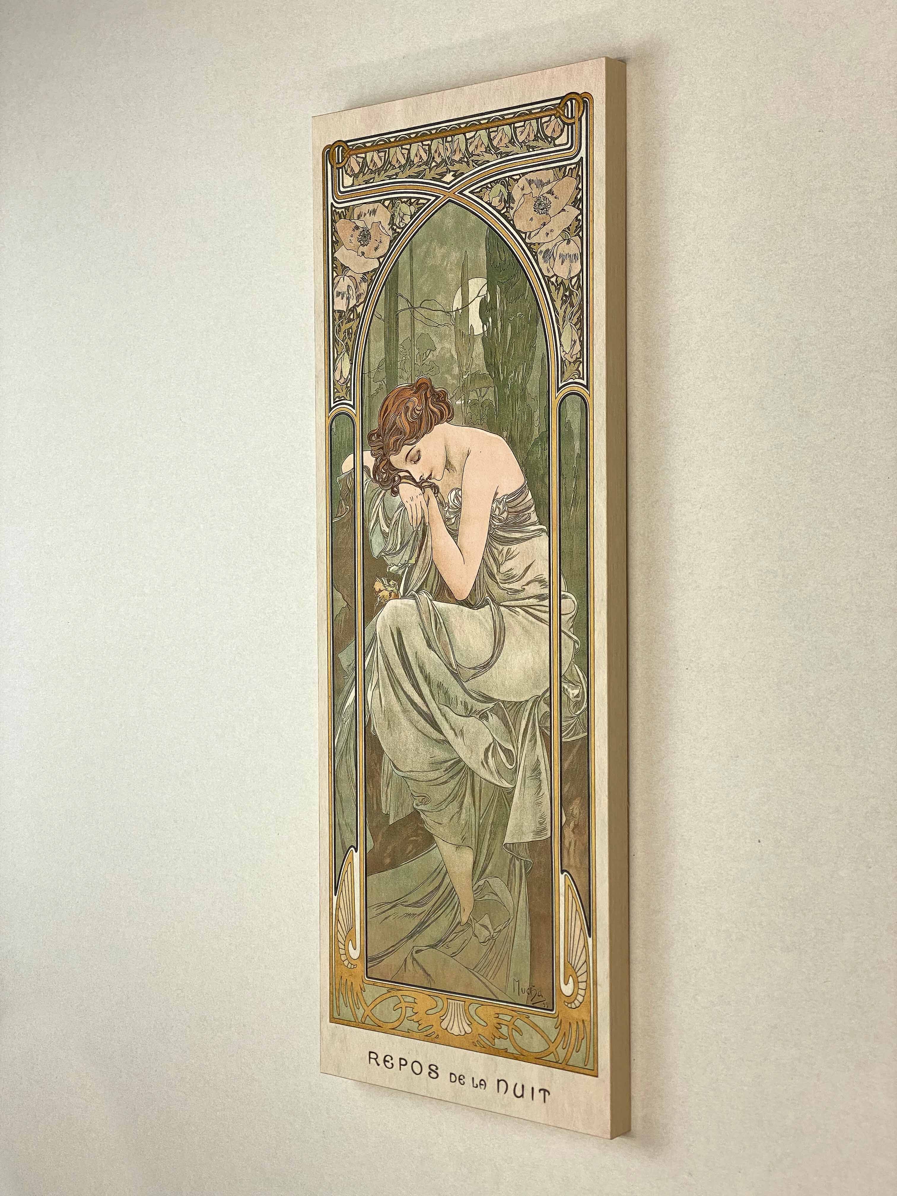 素敵なアートパネル 600X215 4つの時の流れー夜のくつろぎ アルフォンス・ミュシャ 部屋飾り インテリア