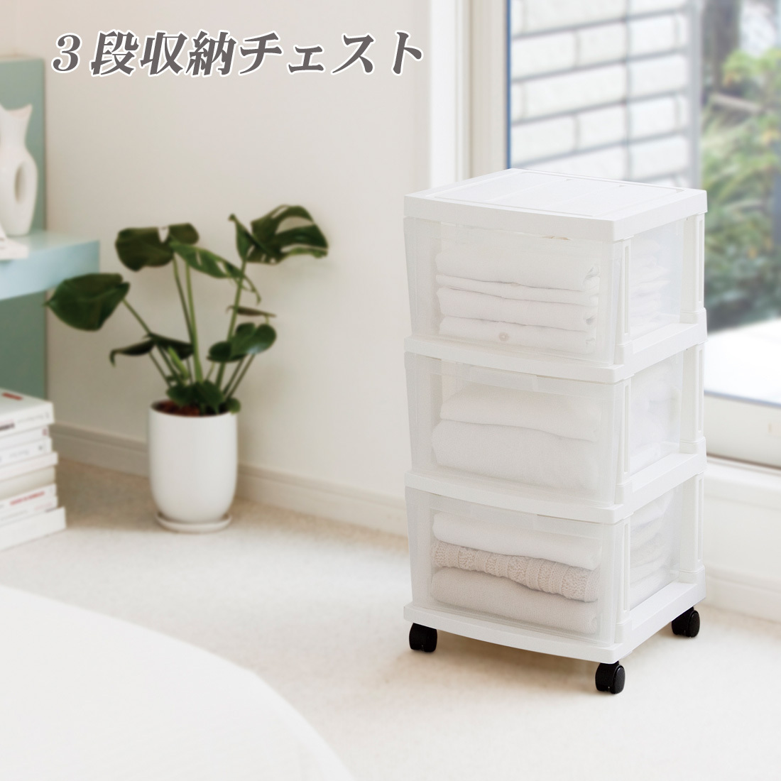 収納 衣類収納 3段 エミング チェスト ボックス 深型 ストッカー プラスチック 衣装ケース 引出し 新生活
