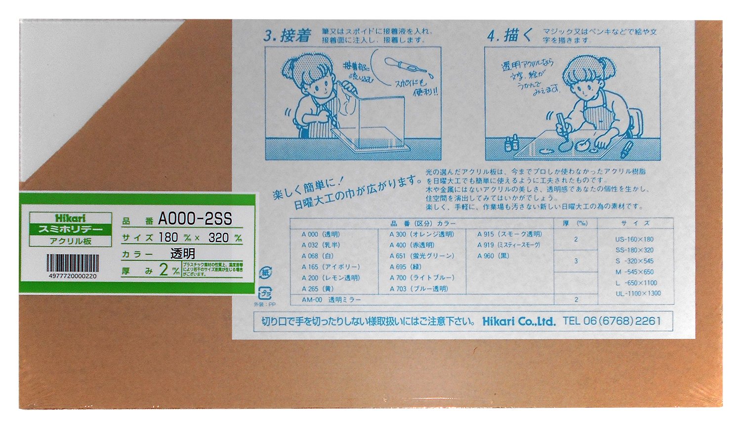 光(Hikari) 光 スミホリデー アクリル板 透明 2×180×320mm A000-2SS